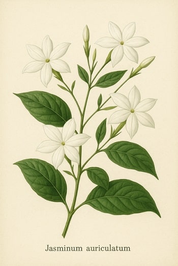 Jasmine auriculatum is well regarded as an aphrodisiac, though it is also considered an antidepressant, sedative, and antispasmodic.